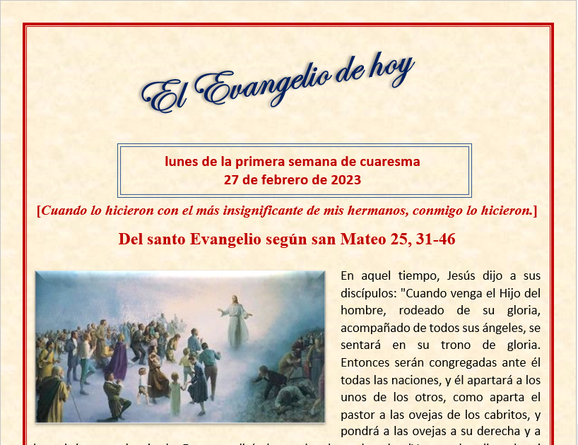 Evangelio De Hoy 27 De Febrero 2024. Evangelio de hoy 27 de febrero. El nombre y el logotipo de la comunidad católica ciudad redonda son marcas registradas.